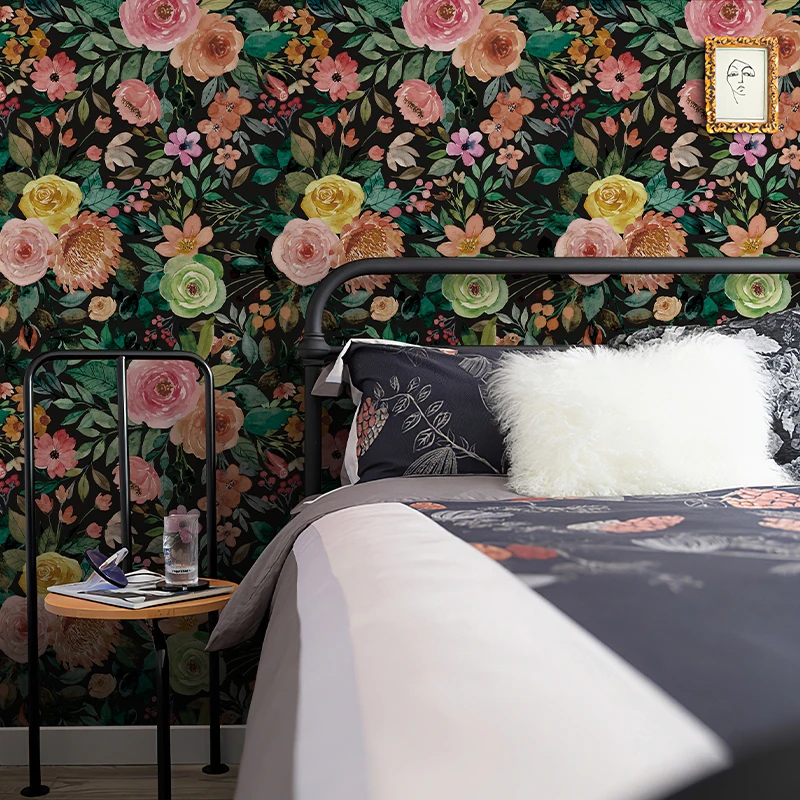 2. Apply Peel-Stick Wallpaper to the wall, beginning in the corner. (Do not peel all the backing all at once, peel off a few inches at a time, slowly stick it to the wall, and then continue to peel off a little more)