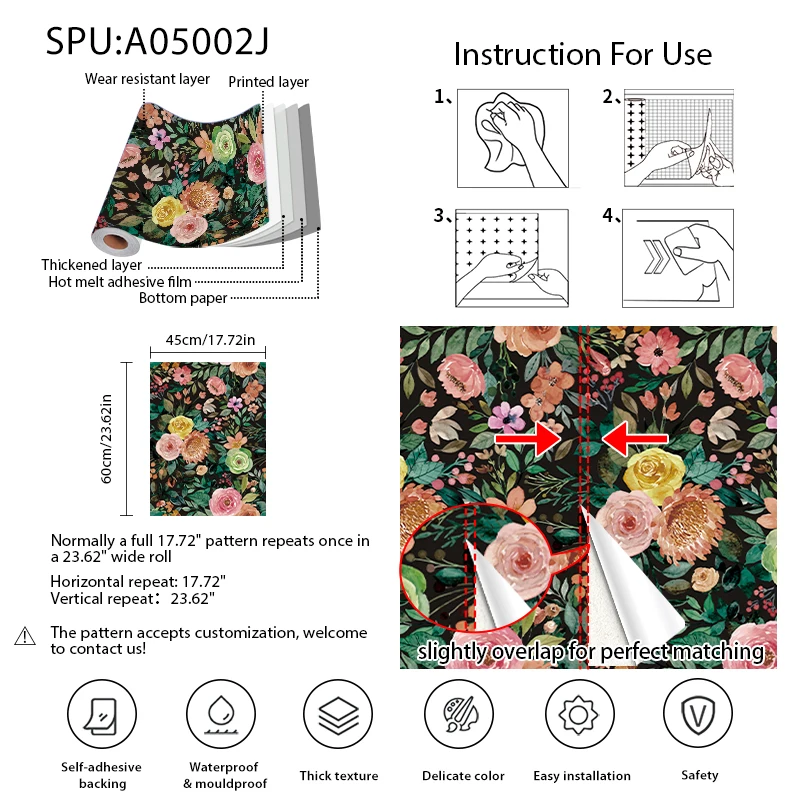 3. Wallpaper you will receive may have some wrinkles on it or both ends, but it do not affect the effect after gluing it on the wall.