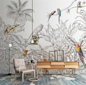 Vinyl Green Leaf Sika Deer Rabbit Fox Sticky Wallpaper