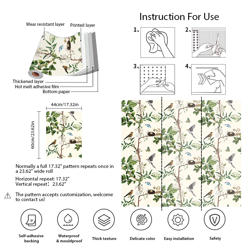 Material: Vinyl PVC Self adhesive Wallpaper