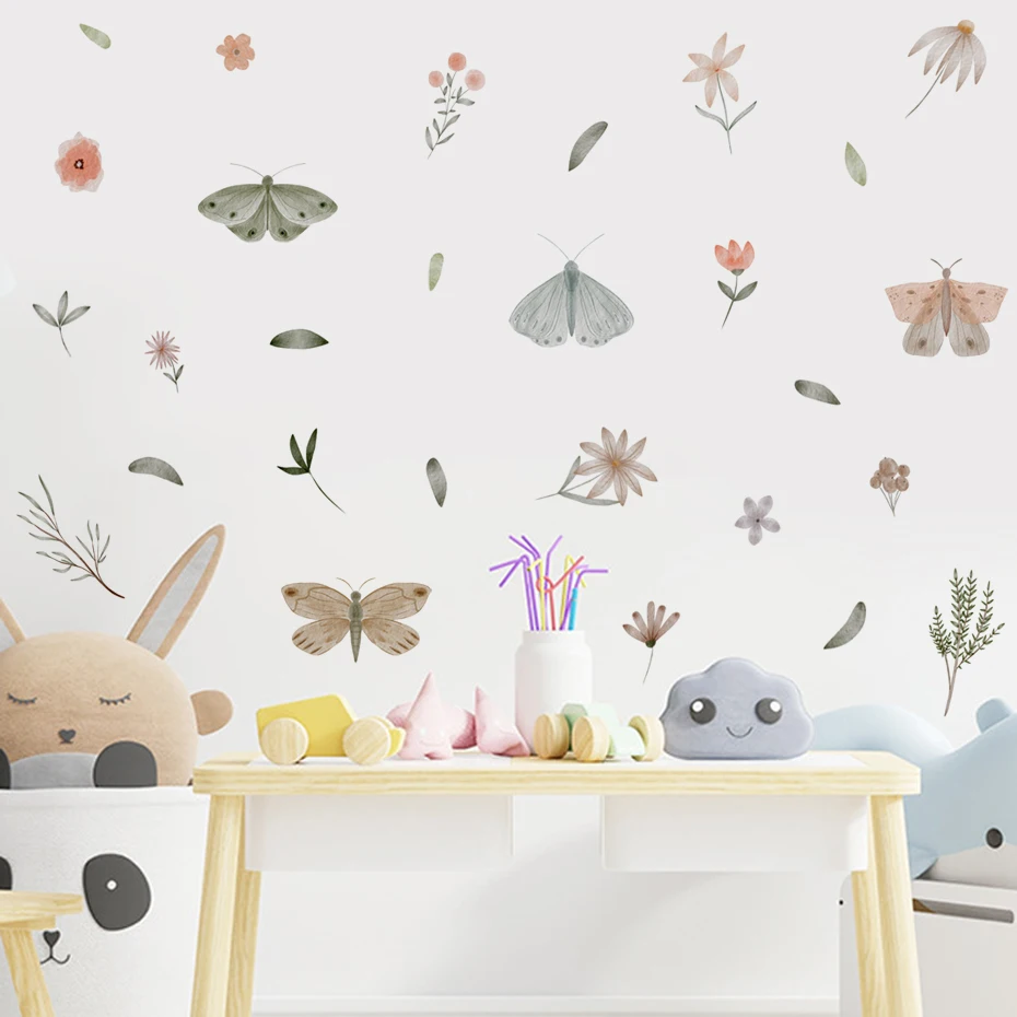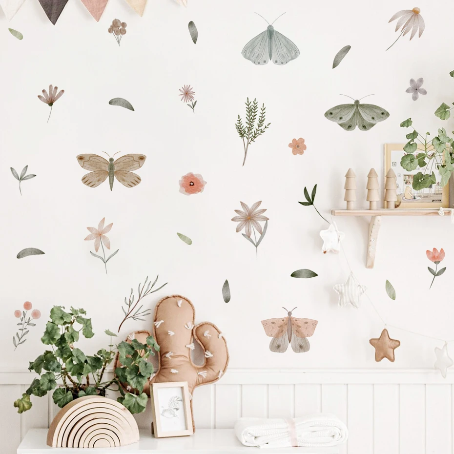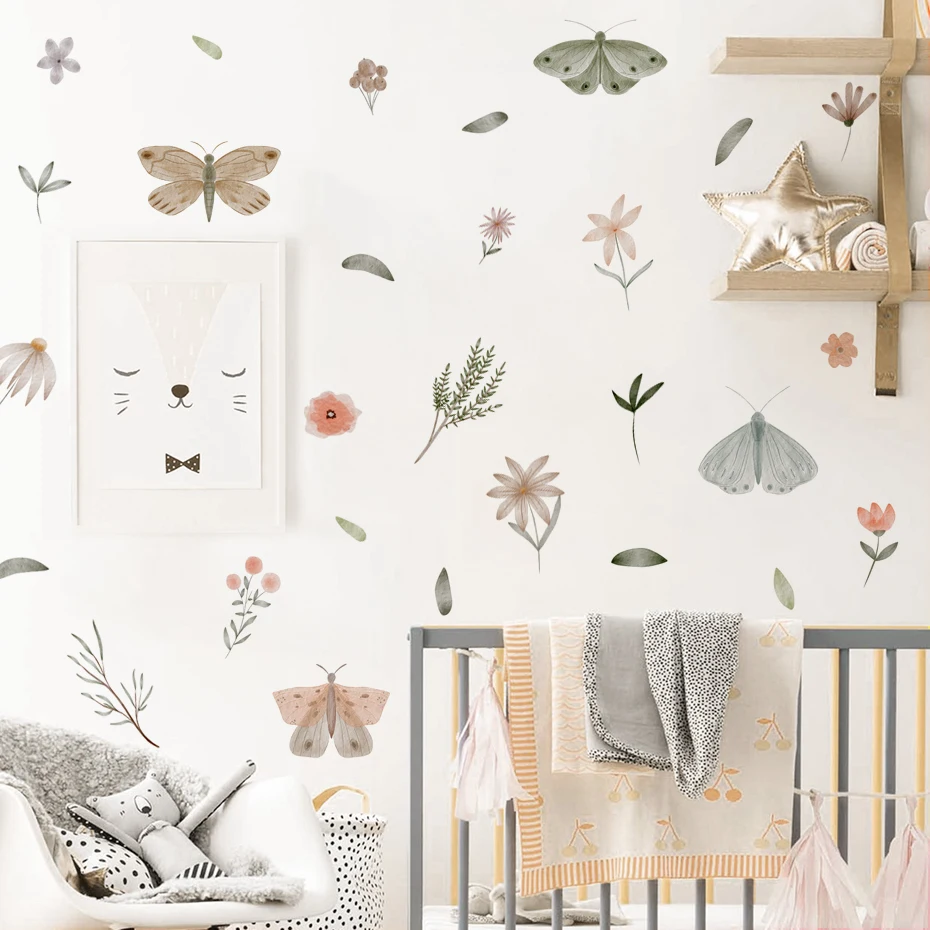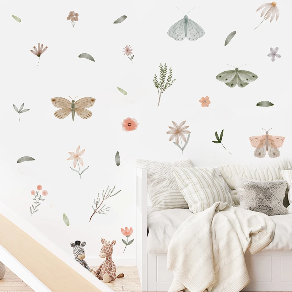 Watercolor Butterfly flowers Wall Sticker