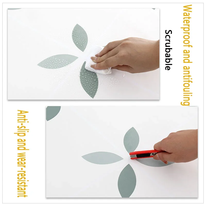 With self-adhesive, easy to pave and stick firmly, no blistering and not easy to warp, and can be removed by tearing off, leaving no residual glue and not damaging the tiles