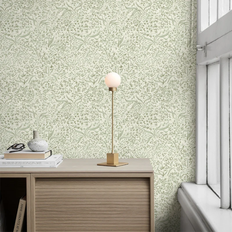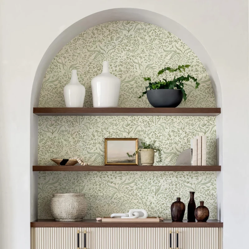 2. Apply Peel-Stick Wallpaper to the wall, beginning in the corner. (Do not peel all the backing all at once, peel off a few inches at a time, slowly stick it to the wall, and then continue to peel off a little more)