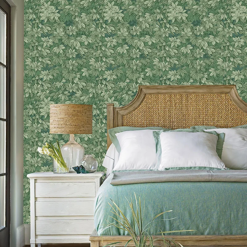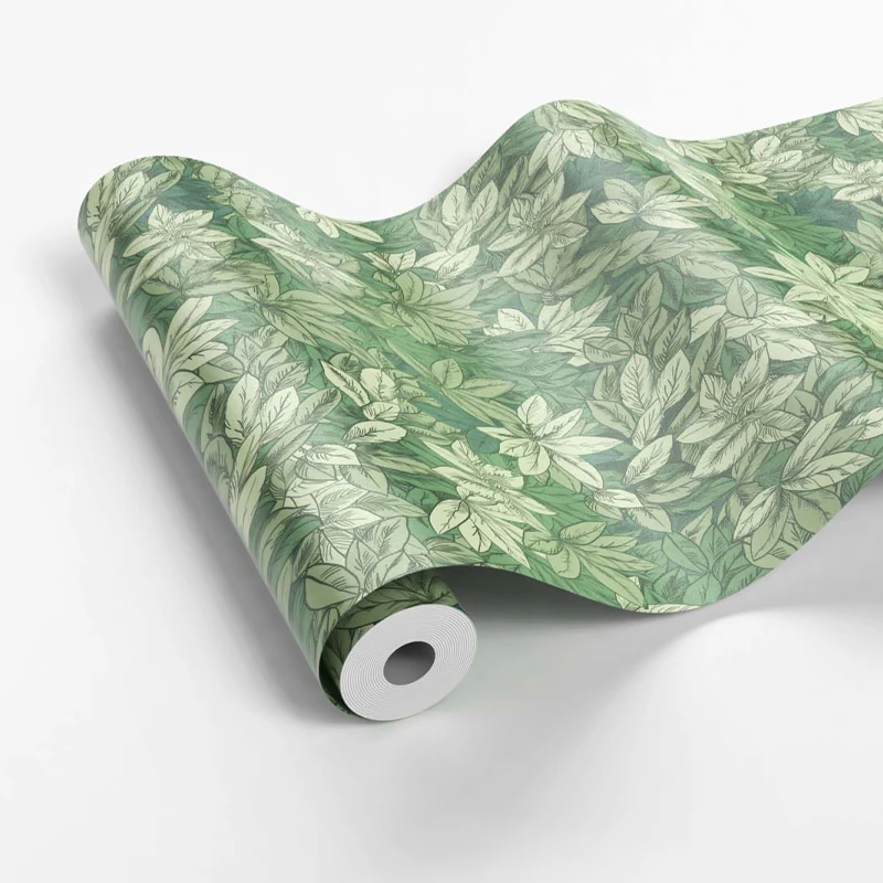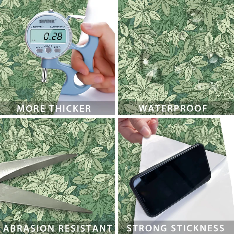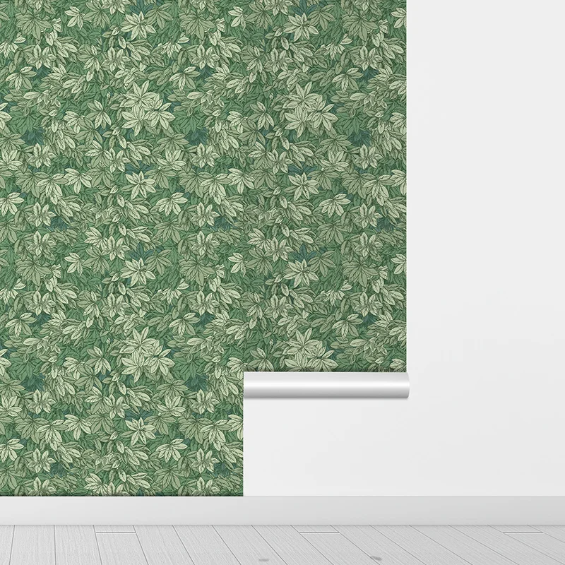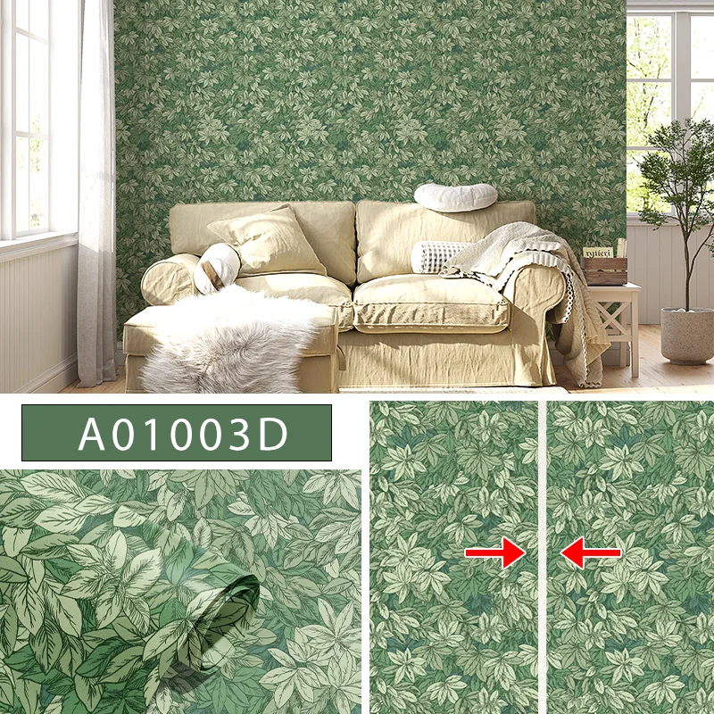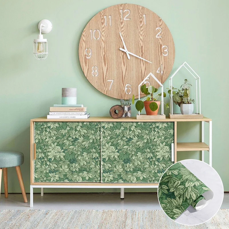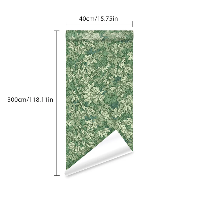 Waterproof Peel And Stick Green Leaf Printed Wallpaper