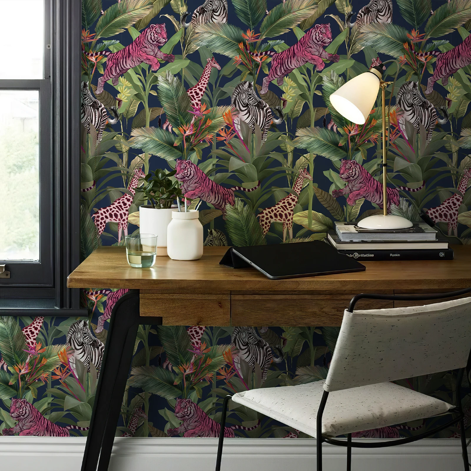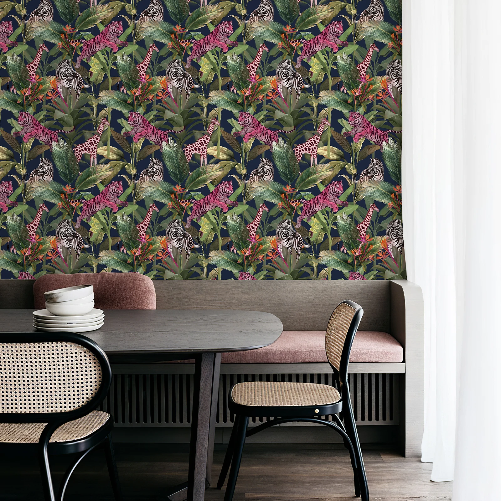 2. Apply Peel-Stick Wallpaper to the wall, beginning in the corner. (Do not peel all the backing all at once, peel off a few inches at a time, slowly stick it to the wall, and then continue to peel off a little more)