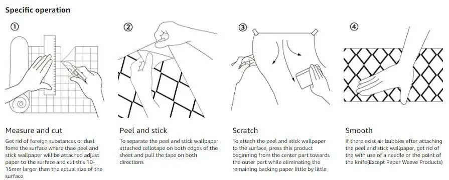 (Cut the required size according to the table on the back of the wallpaper, which is 1cm-15cm larger than the actual surface size after cutting.)