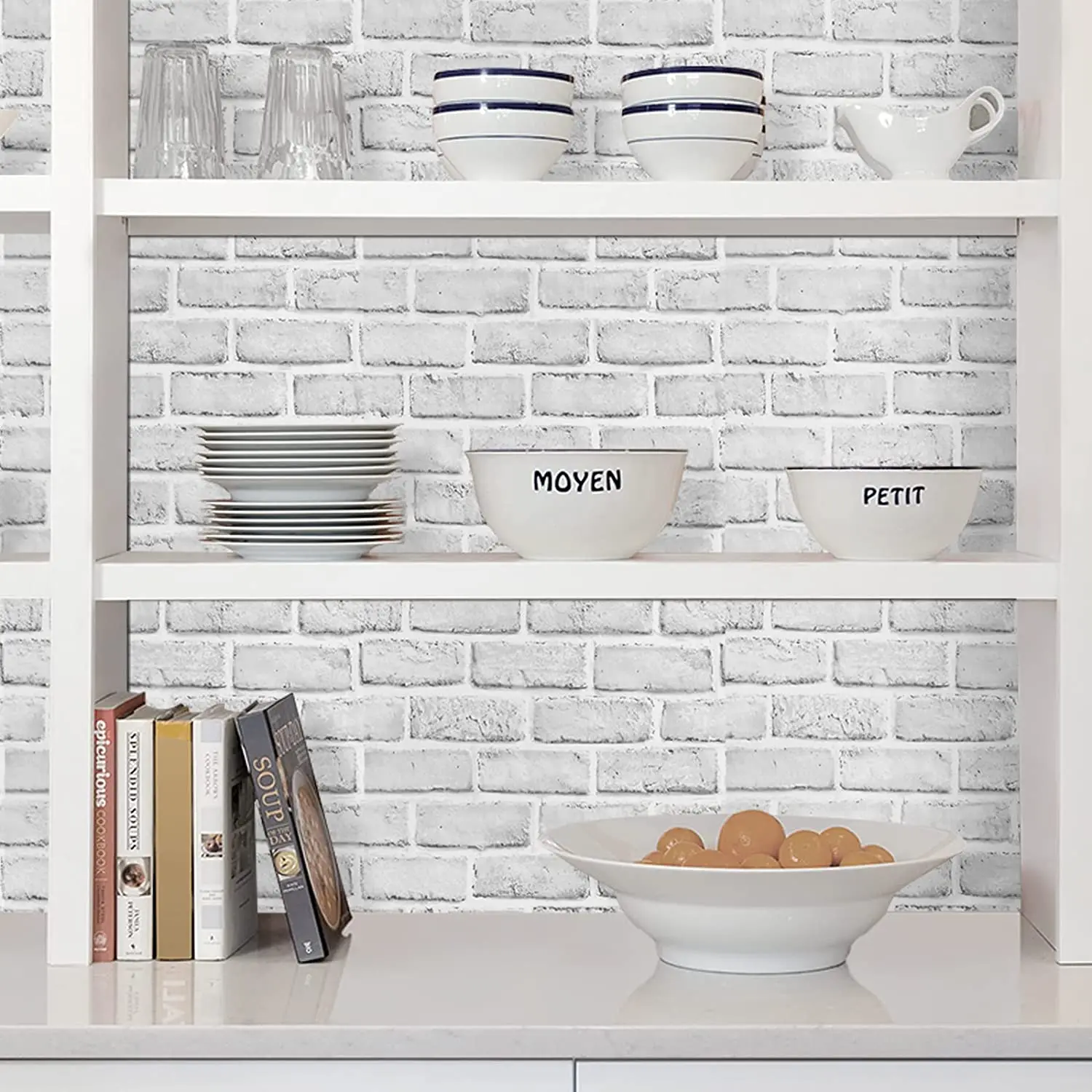 This contact paper is white brick pattern Vinyl Contact Paper. Apply it to walls, backsplash, fireplace background to transform that old surface into a beautiful elegant brown cloth surface.