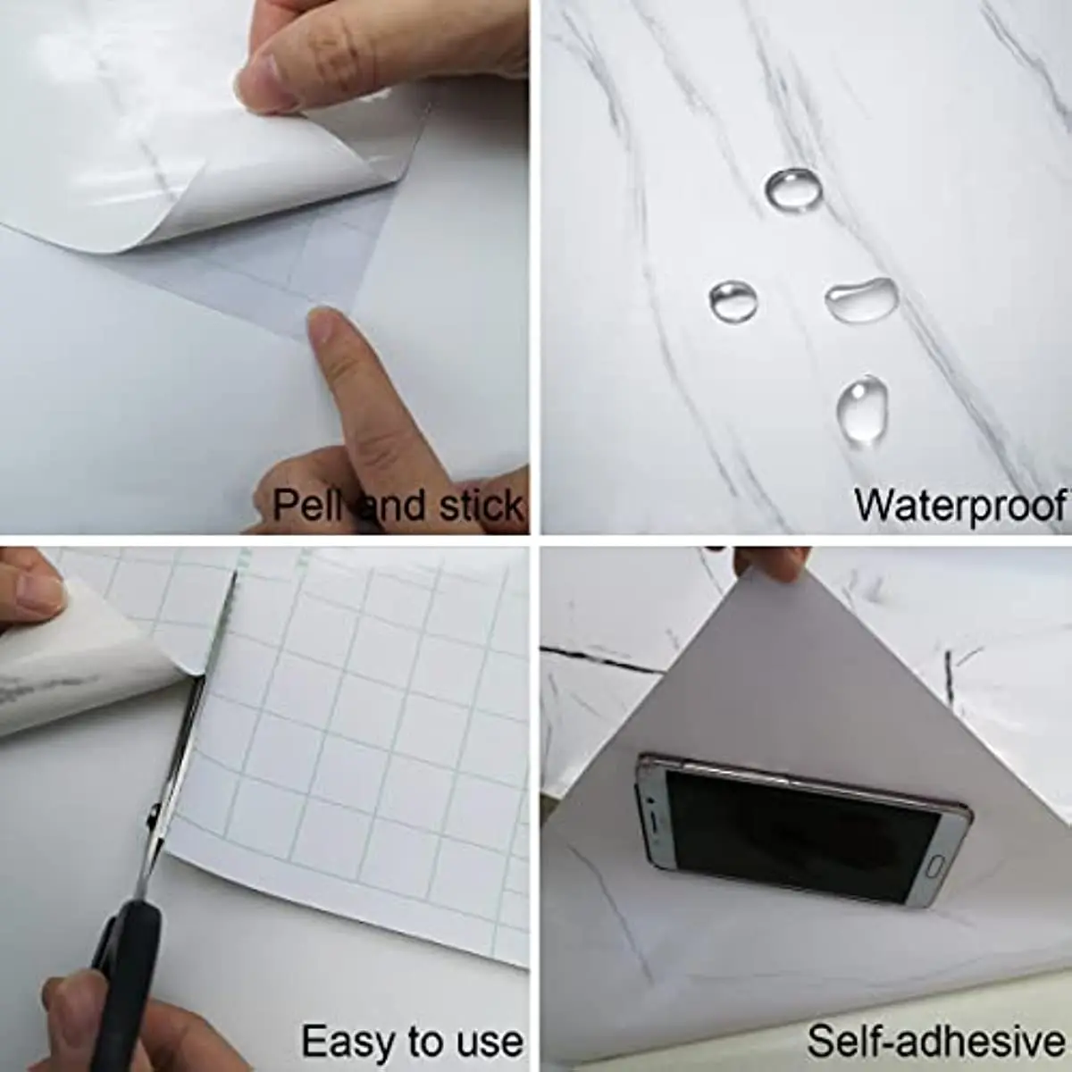 White Marble Wallpaper Glossy Peel and Stick Granite Wall Paper Waterproof Countertop Contact Paper Self Adhesive Wall Sticker