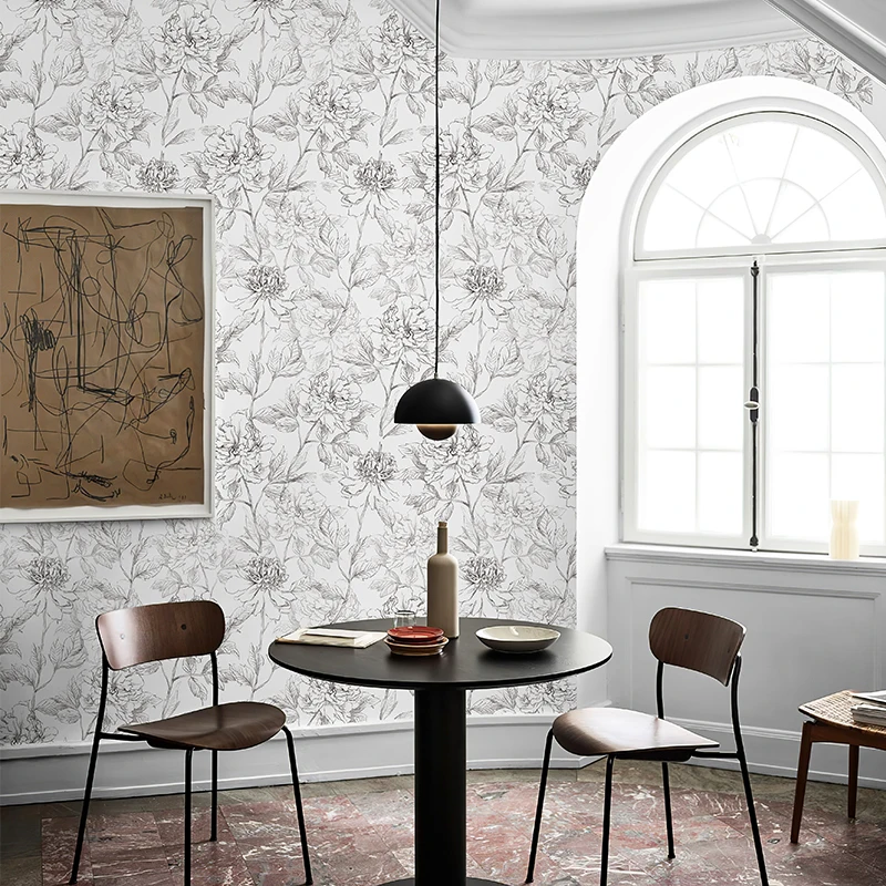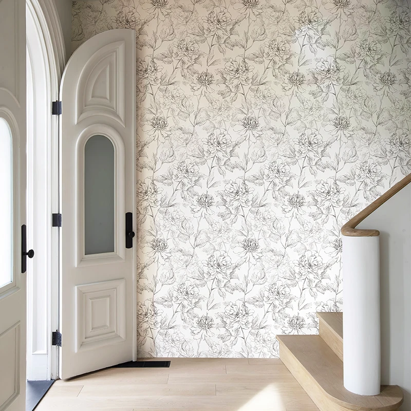 2. Apply Peel-Stick Wallpaper to the wall, beginning in the corner. (Do not peel all the backing all at once, peel off a few inches at a time, slowly stick it to the wall, and then continue to peel off a little more)